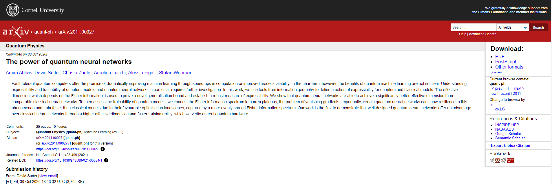 - Barren plateaus in quantum neural network training landscapes (https://www.nature.com/articles/s41467-018-07090-4)